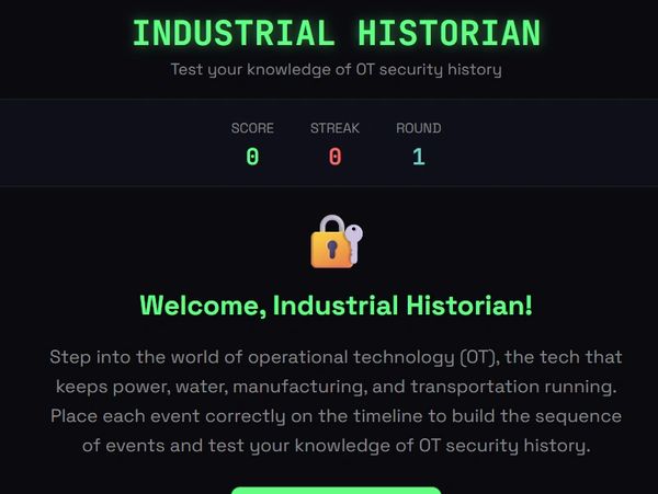 Industrial Historian is a simple timeline trivia game, where players test their knowledge of OT security history by placing events in the correct order.